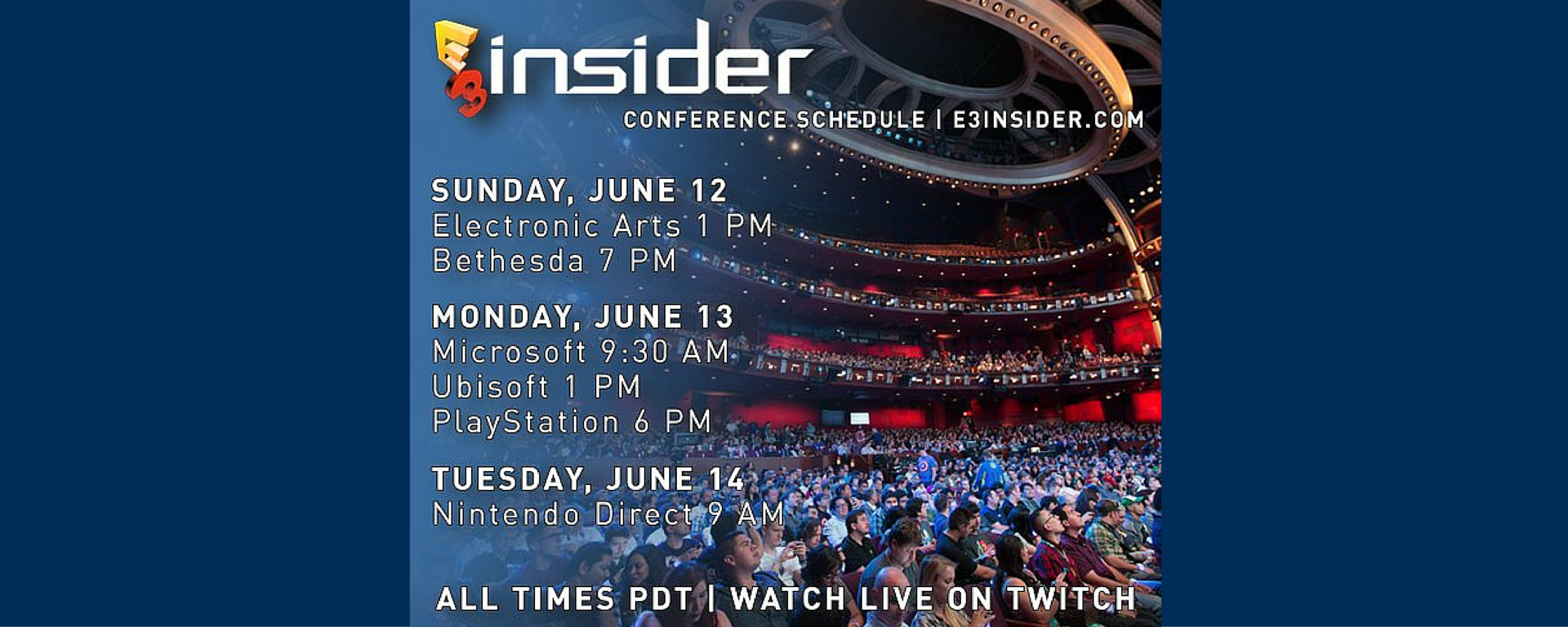 #E3isComing and we’ve got the times of our pre-show conferences in one place for you! #E32016 pic.twitter.com/AlDbe5vZ8q