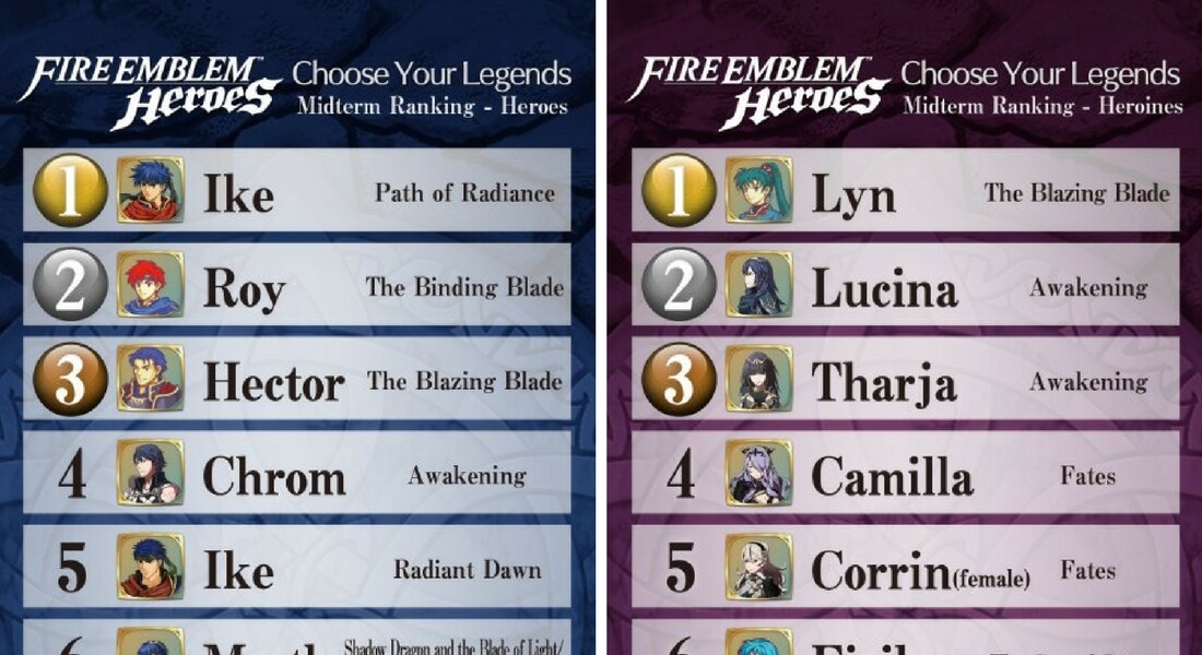 La Cuenta Oficial de Nintendo de América en Twitter ha compartido el resultado Preliminar del Evento: ‘Elige a tu Leyenda’ para Fire Emblem: Heroes, el primer Juego de Fire Emblem para Dispositivos Móviles: