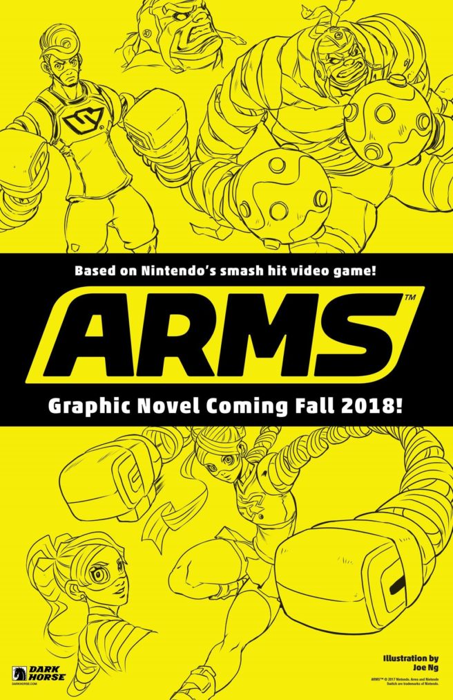 Nintendo ha confirmado una nueva Colaboración con Dark Horse para traer una Novela Gráfica de ARMS. Hasta el momento no hay mucha información al respecto, solo se sabe que esta Novela Gráfica llegará en algún momento del Otoño del 2018.