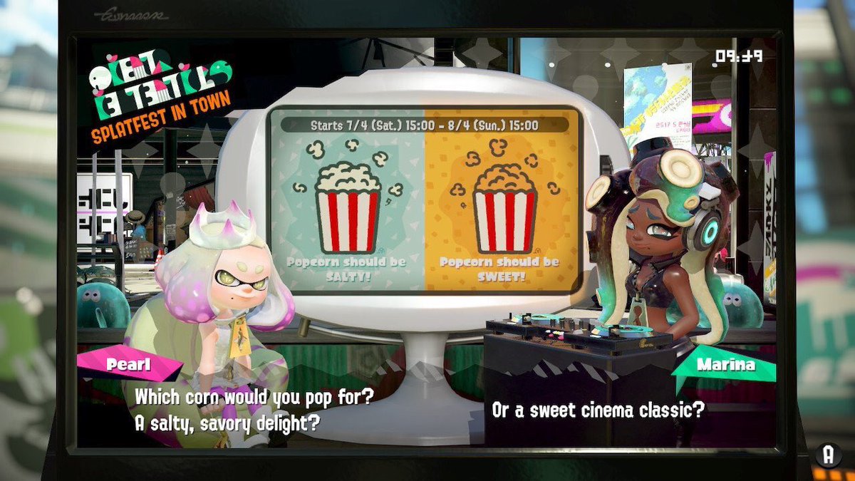 La Cuenta Oficial de Nintendo UK en Twitter ha confirmado un nuevo Splatfest Europeo para Splaroon 2 de Nintendo Switch. En esta ocasión los Participantes tendrán que elegir entre Palomitas Saladas vs. Dulces: