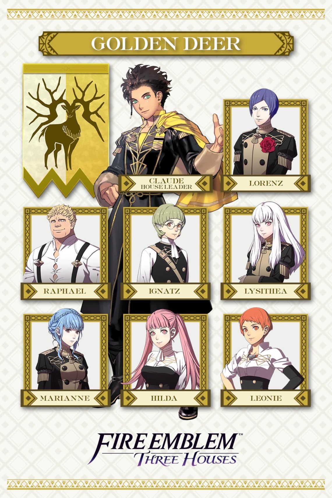 La cuenta Oficial de Nintendo de America en Twitter ha compartido una infografía con los personajes que pertenecen a la casa de Golden Deer de Fire Emblem: Three Houses para Nintendo Switch. Pueden ver esta imagen a continuación o en la parte principal de esta Entrada: