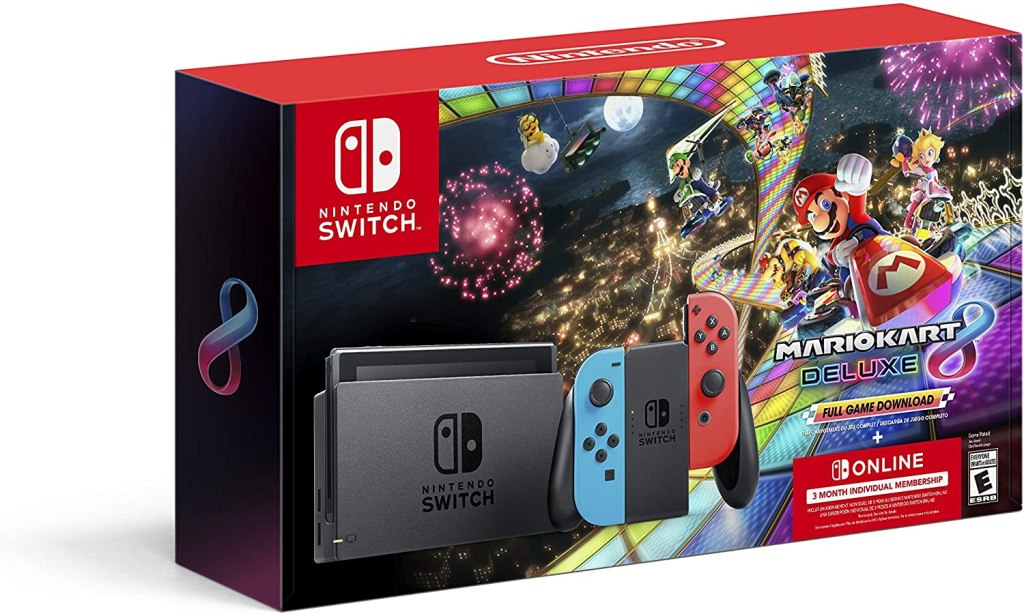 Existe un Bundle de Nintendo Switch junto con Mario Kart 8 Deluxe que además incluye una suscripción de 3 meses de Nintendo Switch Online para un usuario: