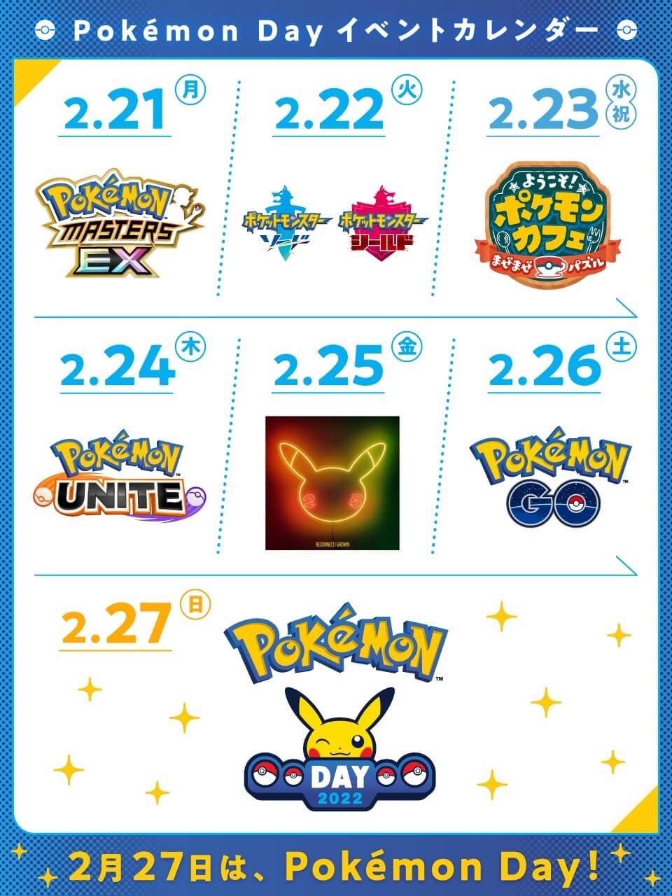 Como es bien sabido por muchos, el Pokémon Day que se festeja el 27 de Febrero de cada año esta a la vuelta de la esquina, y The Pokémon Company ha comenzado a encender las expectativas con una serie de anuncios que estará llevando a cabo a lo largo de esta semana.