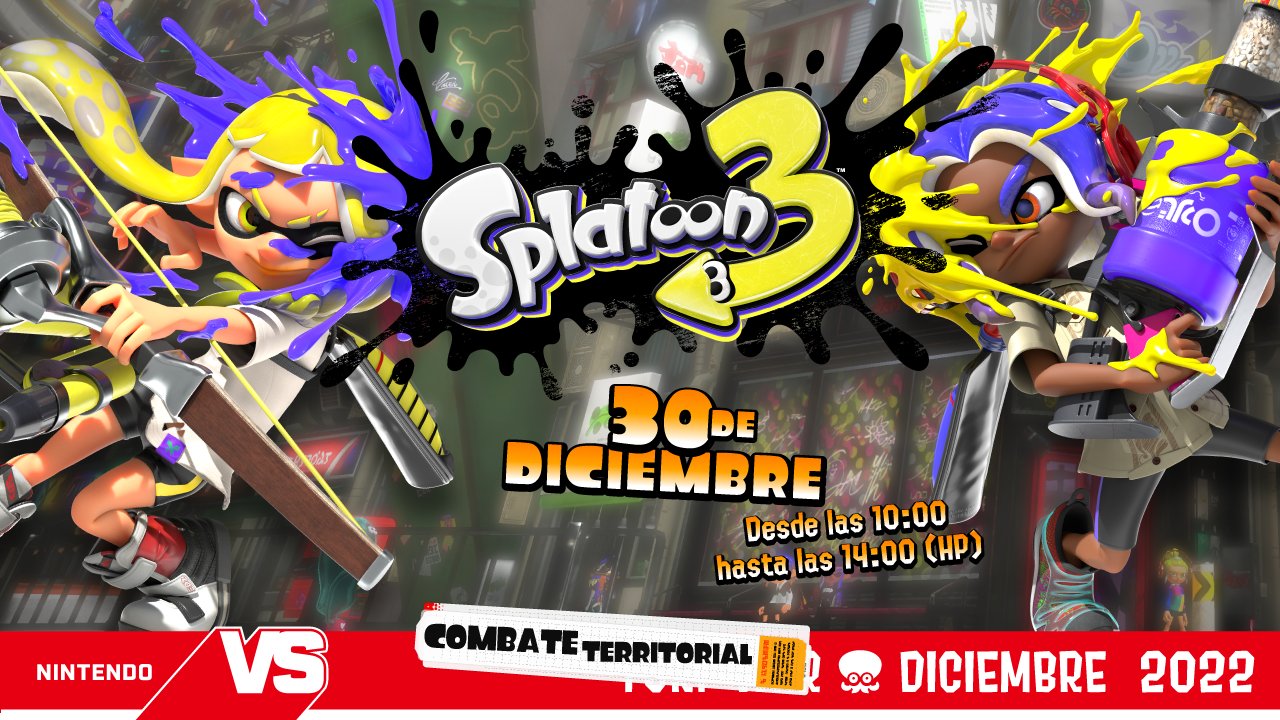 A través de sus redes sociales, Nintendo ha confirmado un nuevo torneo de Splatoon 3 llamado Combate territorial diciembre 2022. Este evento se llevará a cabo el próximo 30 de diciembre.