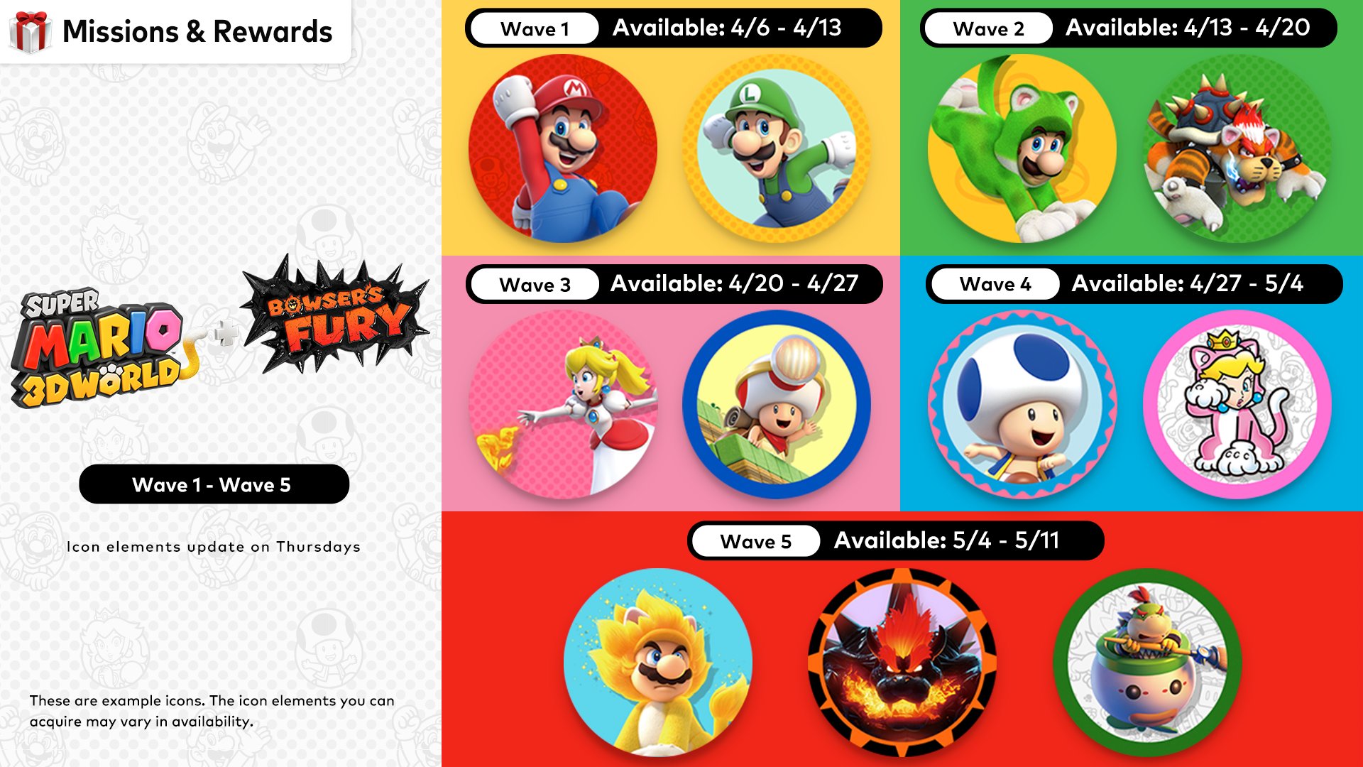 Nintendo ha confirmado una serie de oleadas con iconos de Super Mario 3D World + Bowser’s Fury cómo recompensas a los puntos de Platino de los usuarios de My Nintendo.
