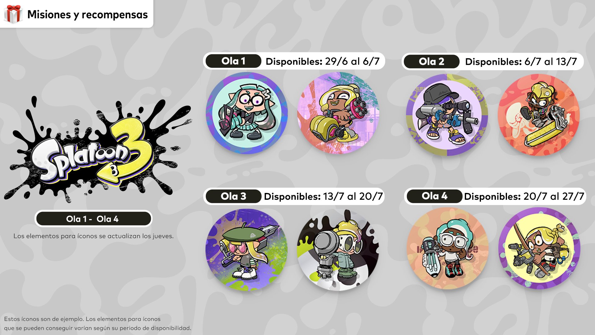 Esta semana se ha comenzado a liberar una serie de oleadas de nuevos iconos de Splatoon 3 para los miembros de Nintendo Switch Online.
