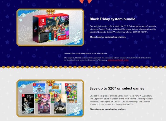 Nintendo detalla sus planes de Black Friday 2022.